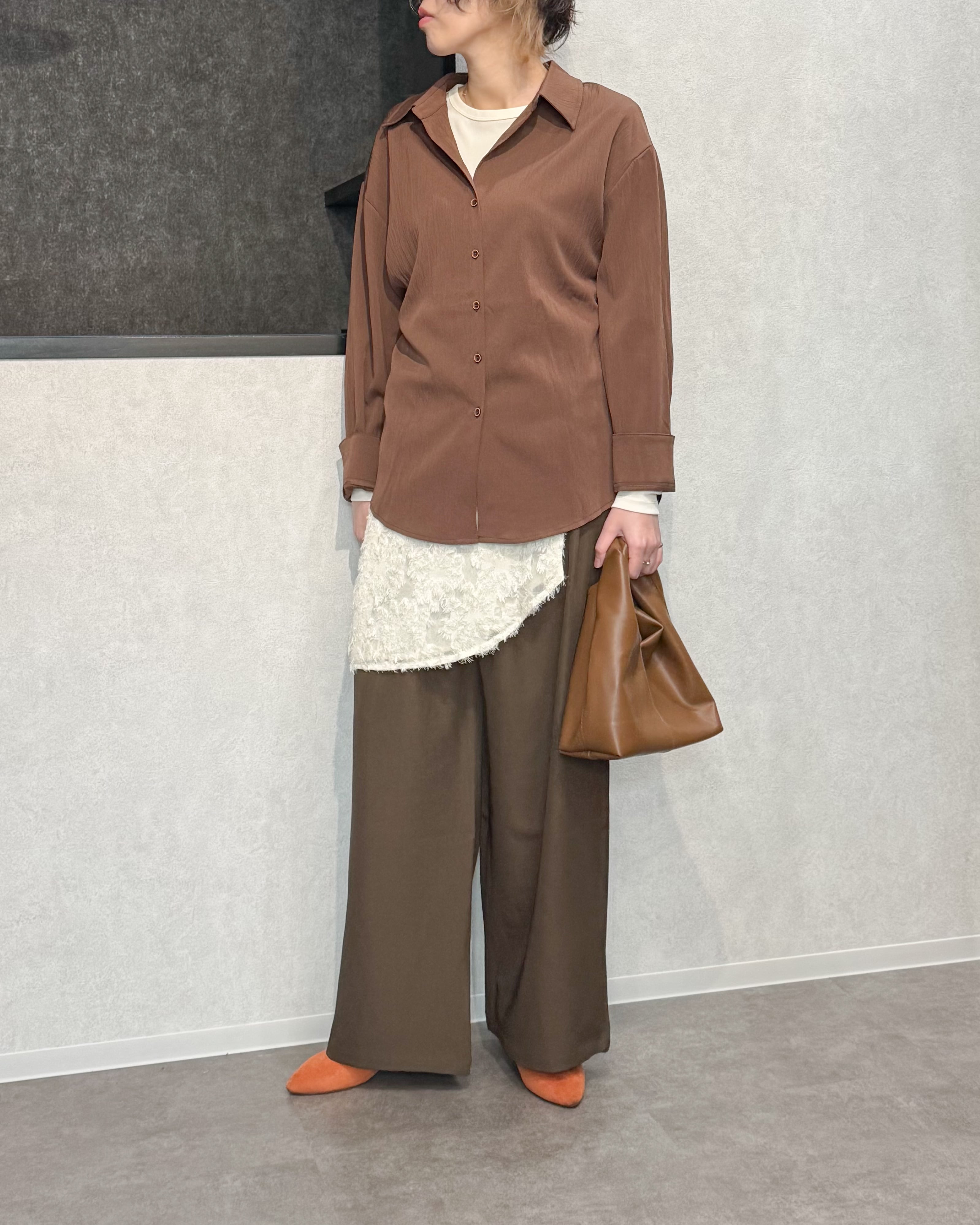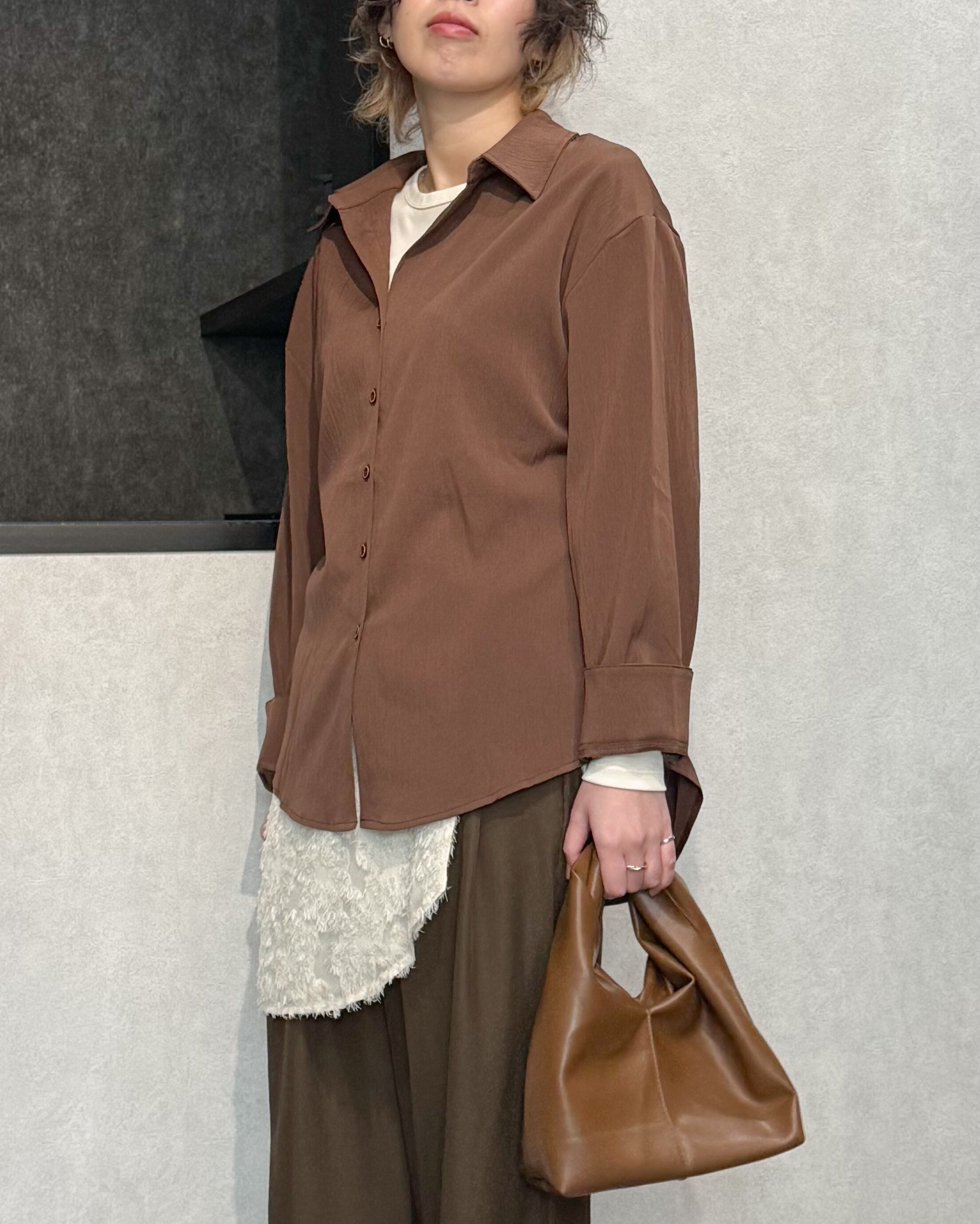 ワッシャー加工オーバーサイズシャツ【Brown】