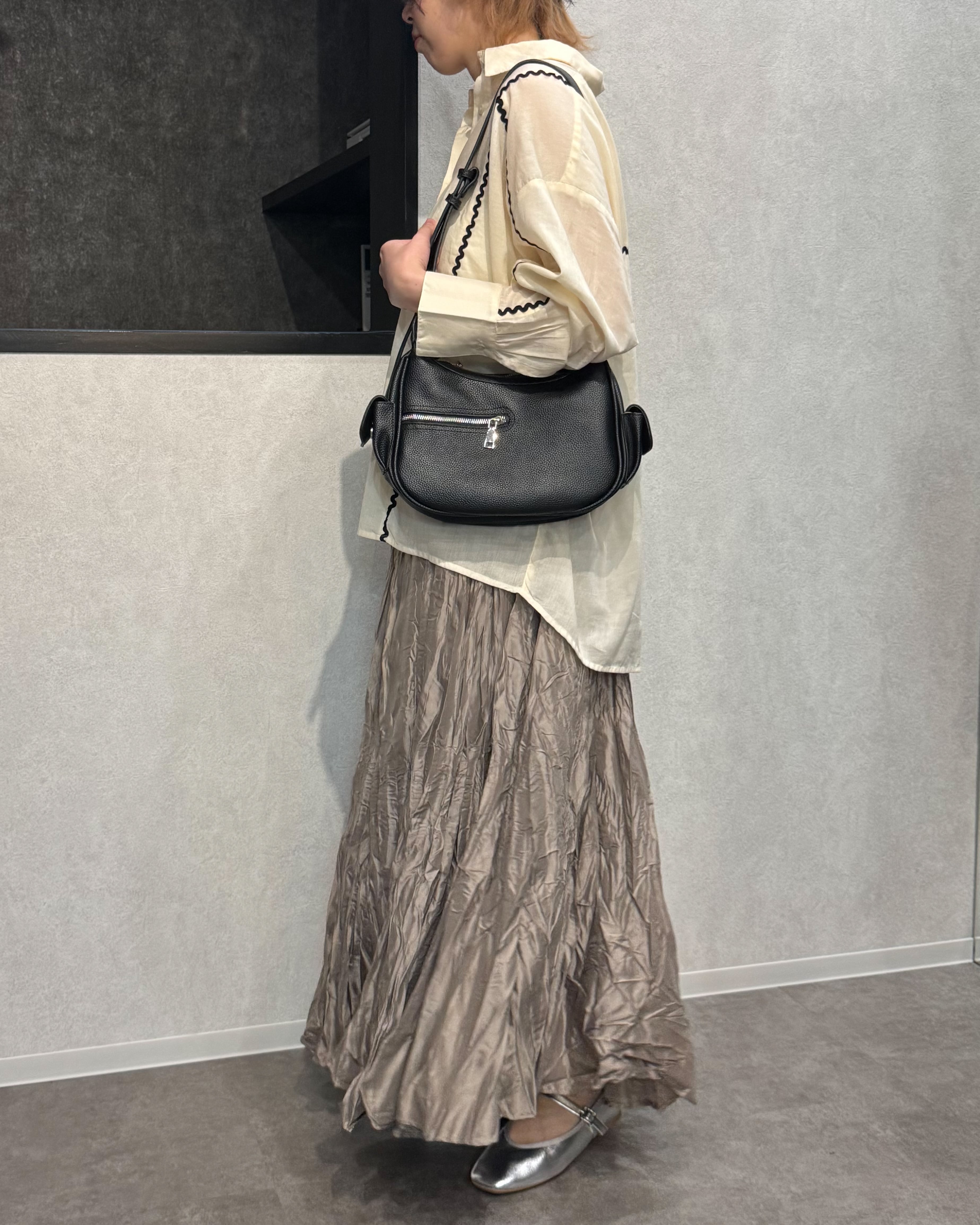 光沢感のある生地感に加え、