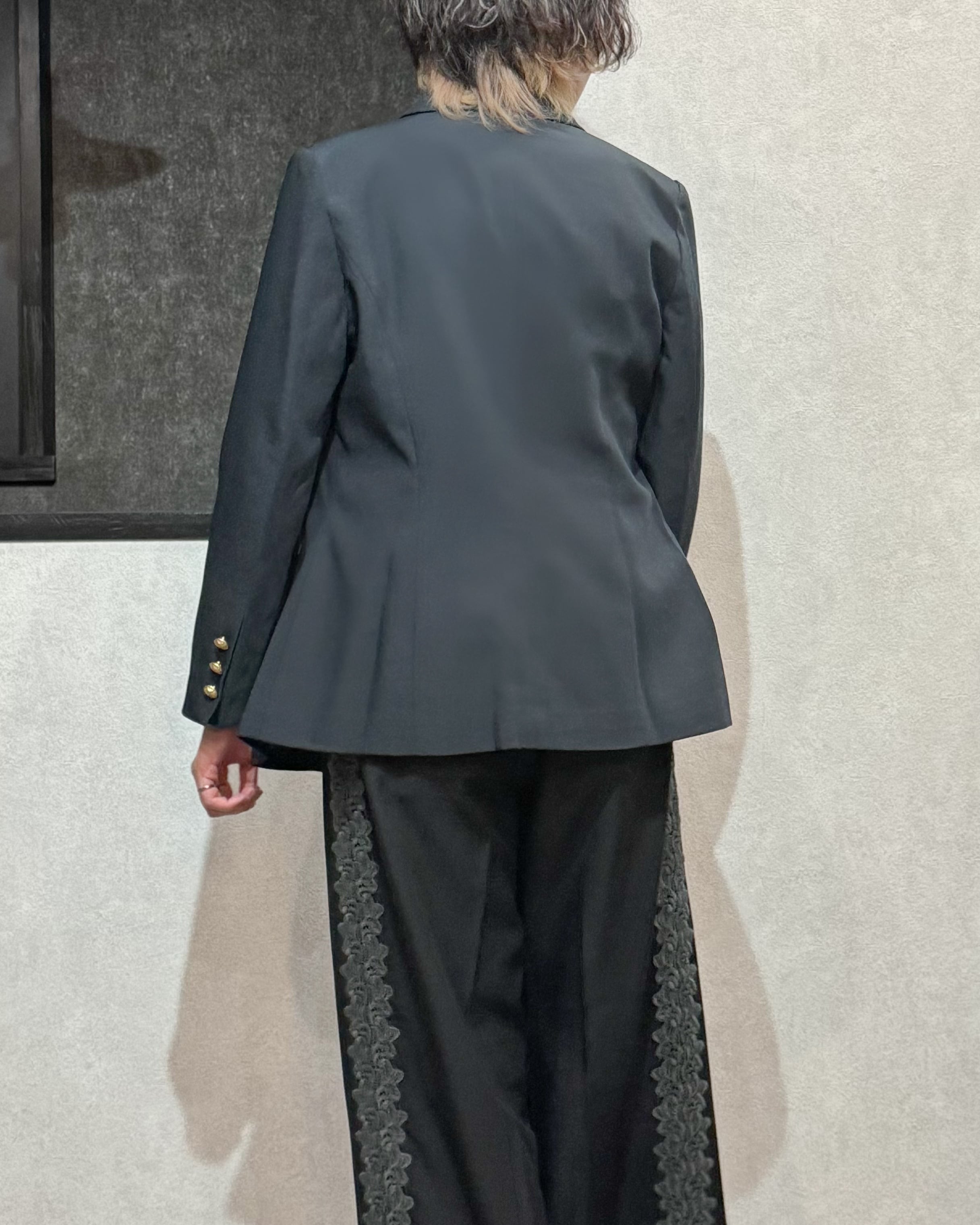 フロントと袖に付いたゴールド釦がアクセントに。