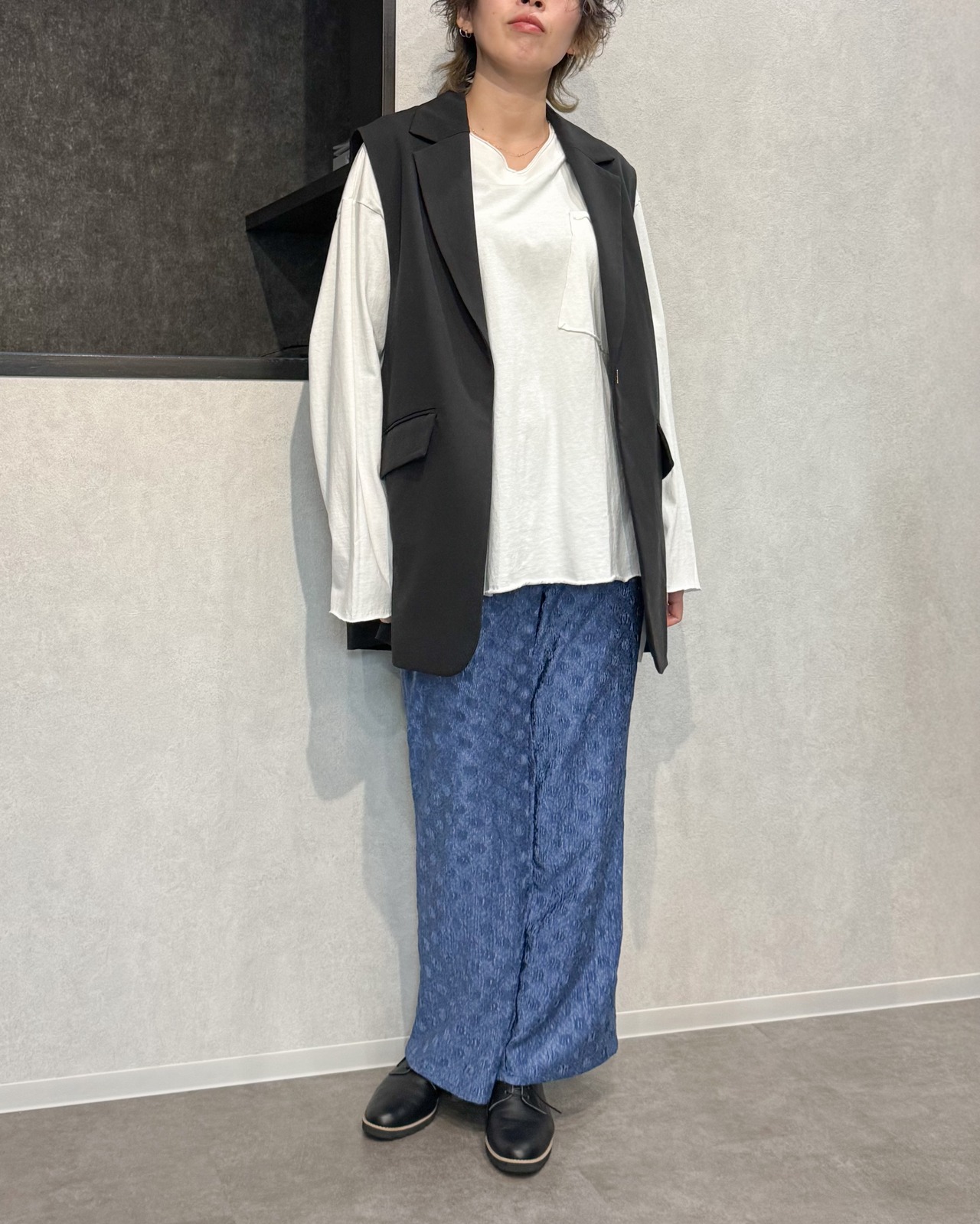 ロング丈のアイテムと合わせて、