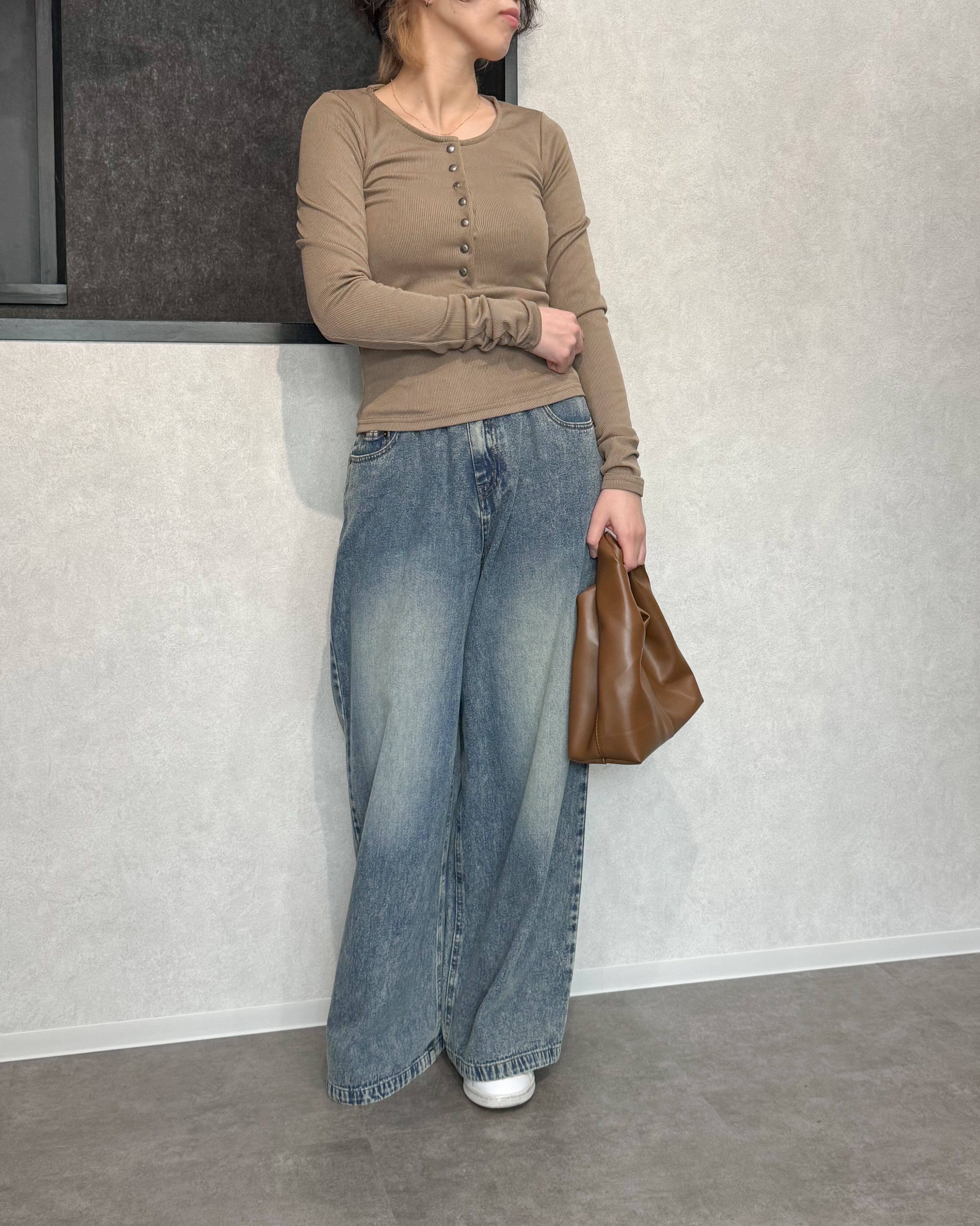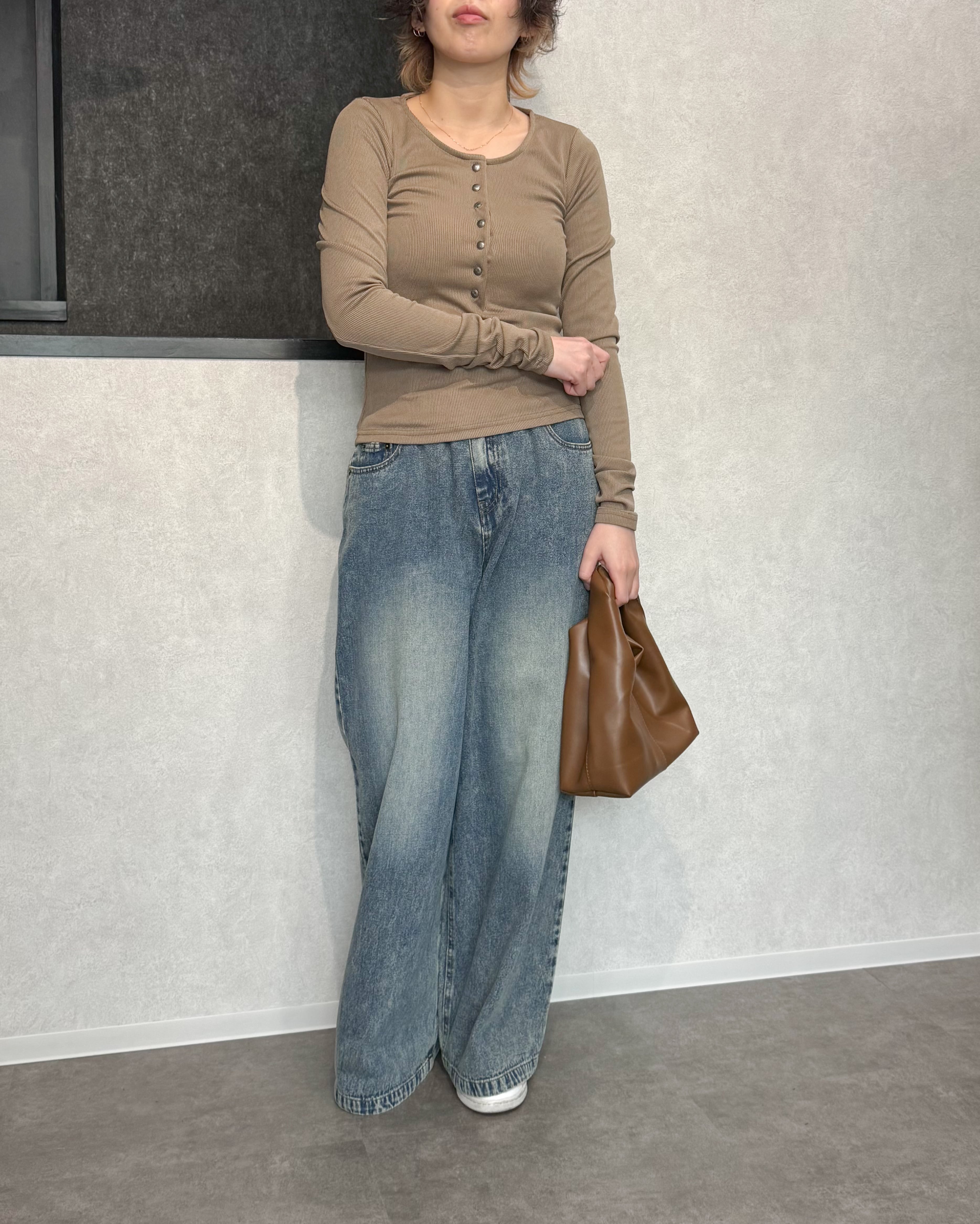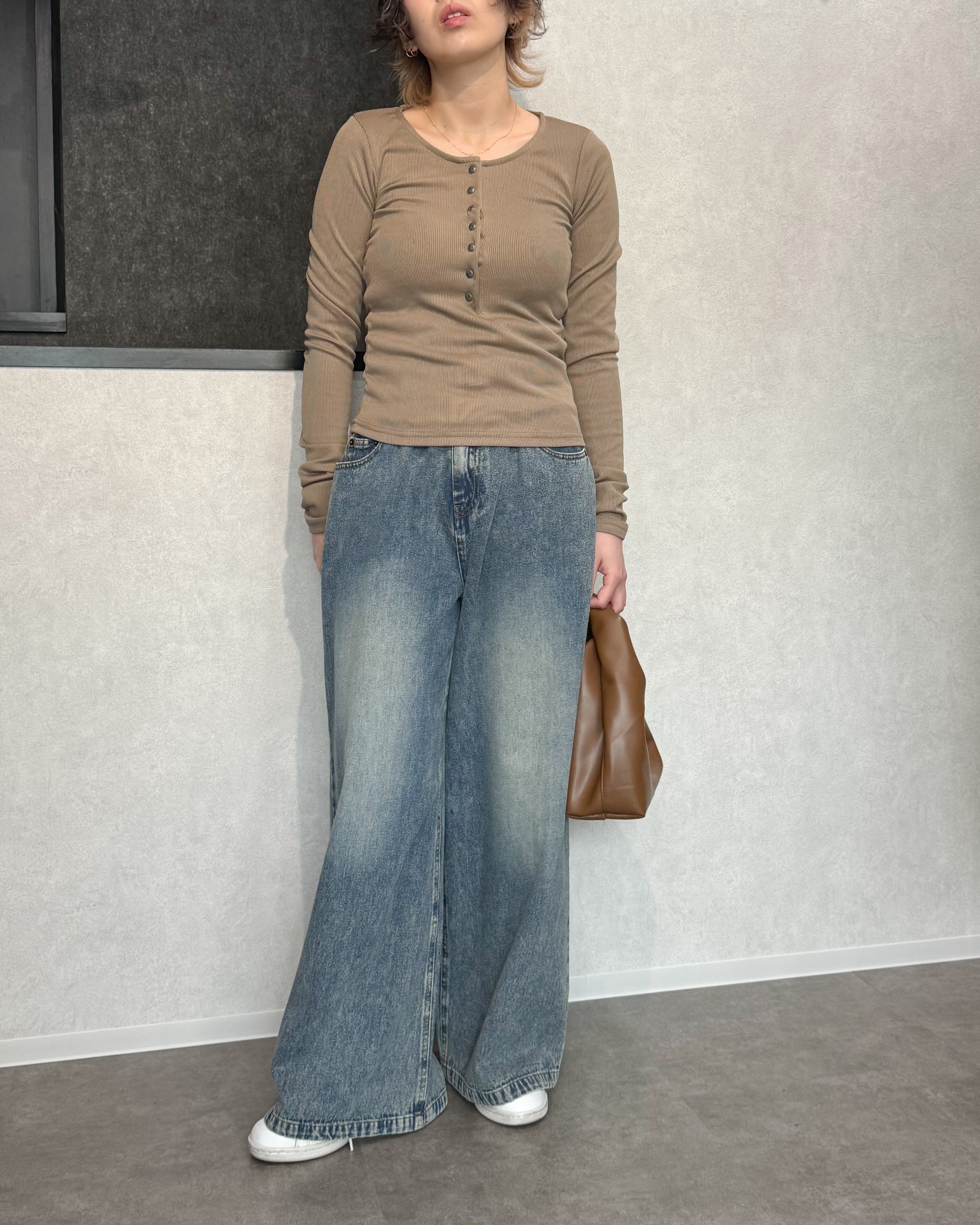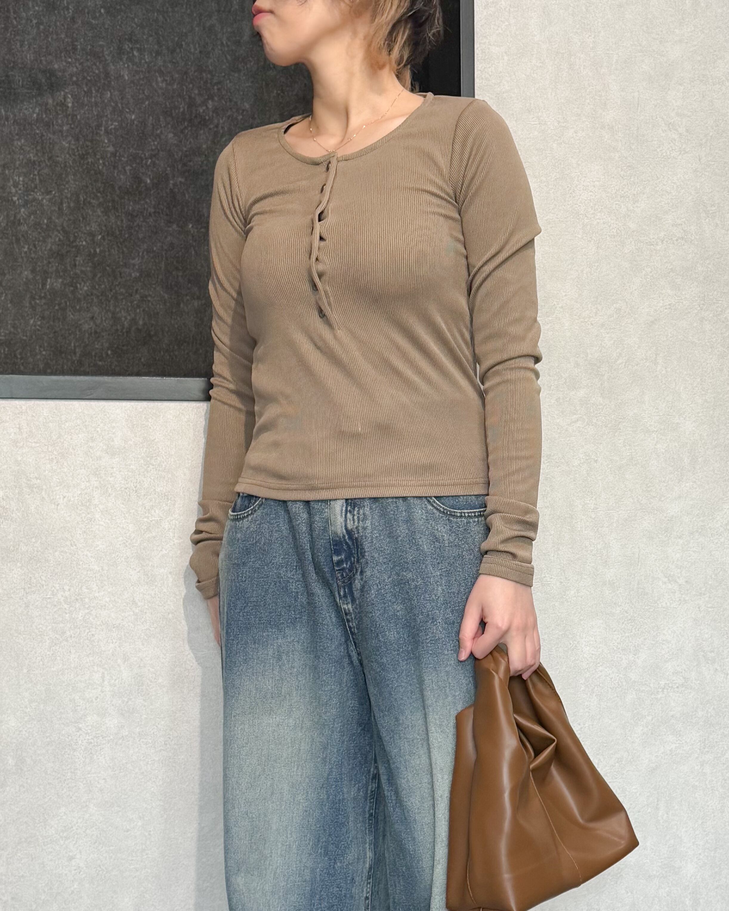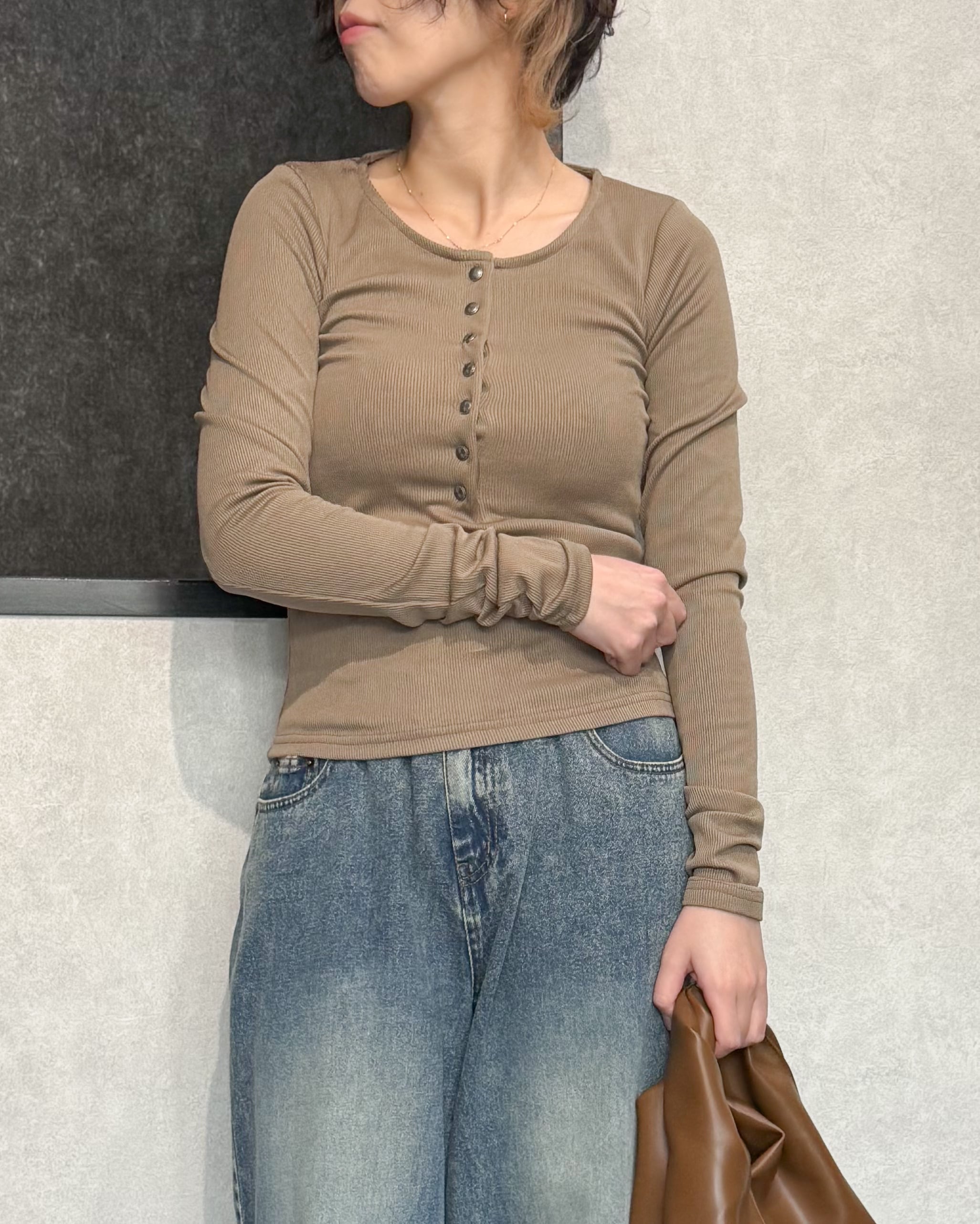 ヘンリーネックリブプルオーバー【Greige】