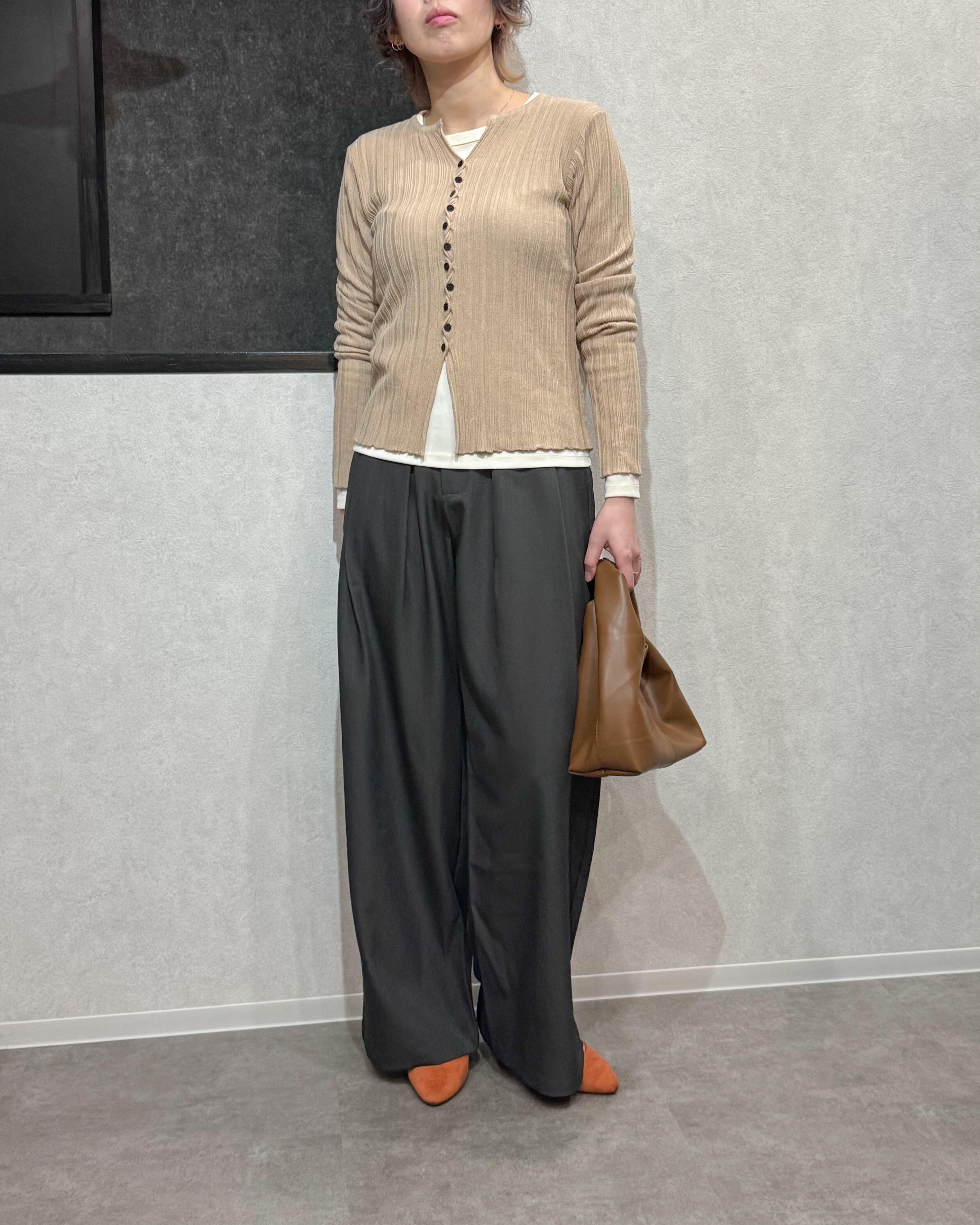 細リブの縦ラインで、すっきり見え&重ね着も軽やかに◎