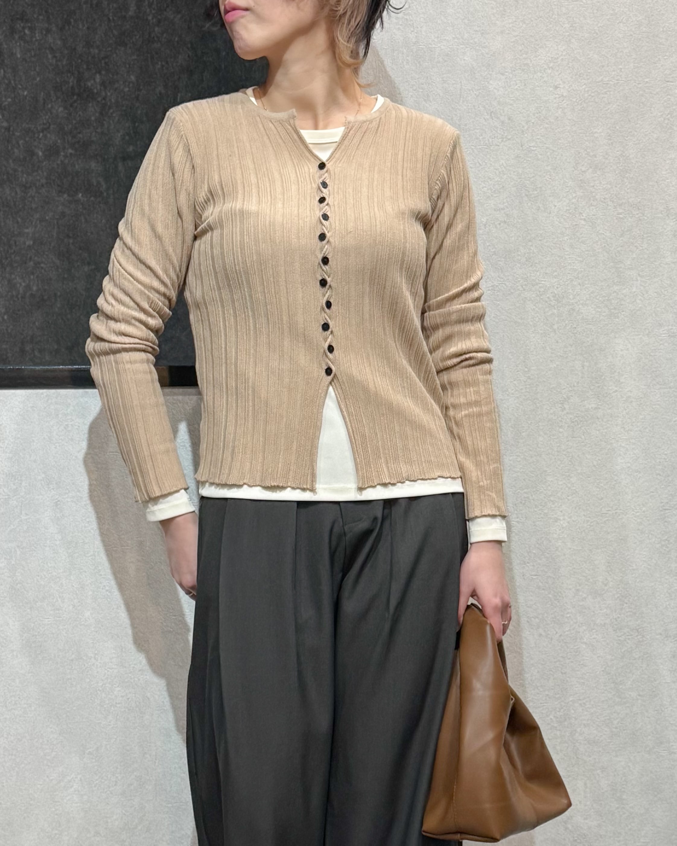 アシンメトリーボタンカーディガン【Beige】