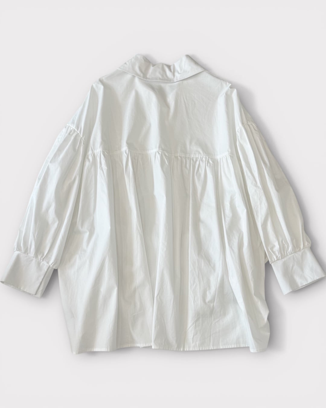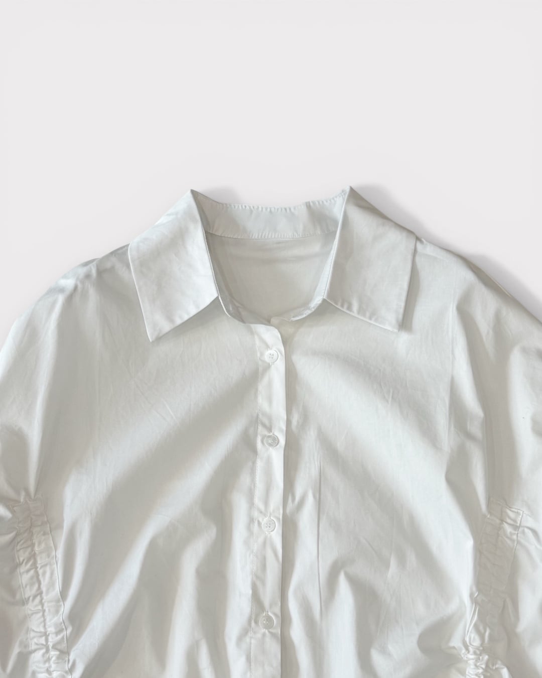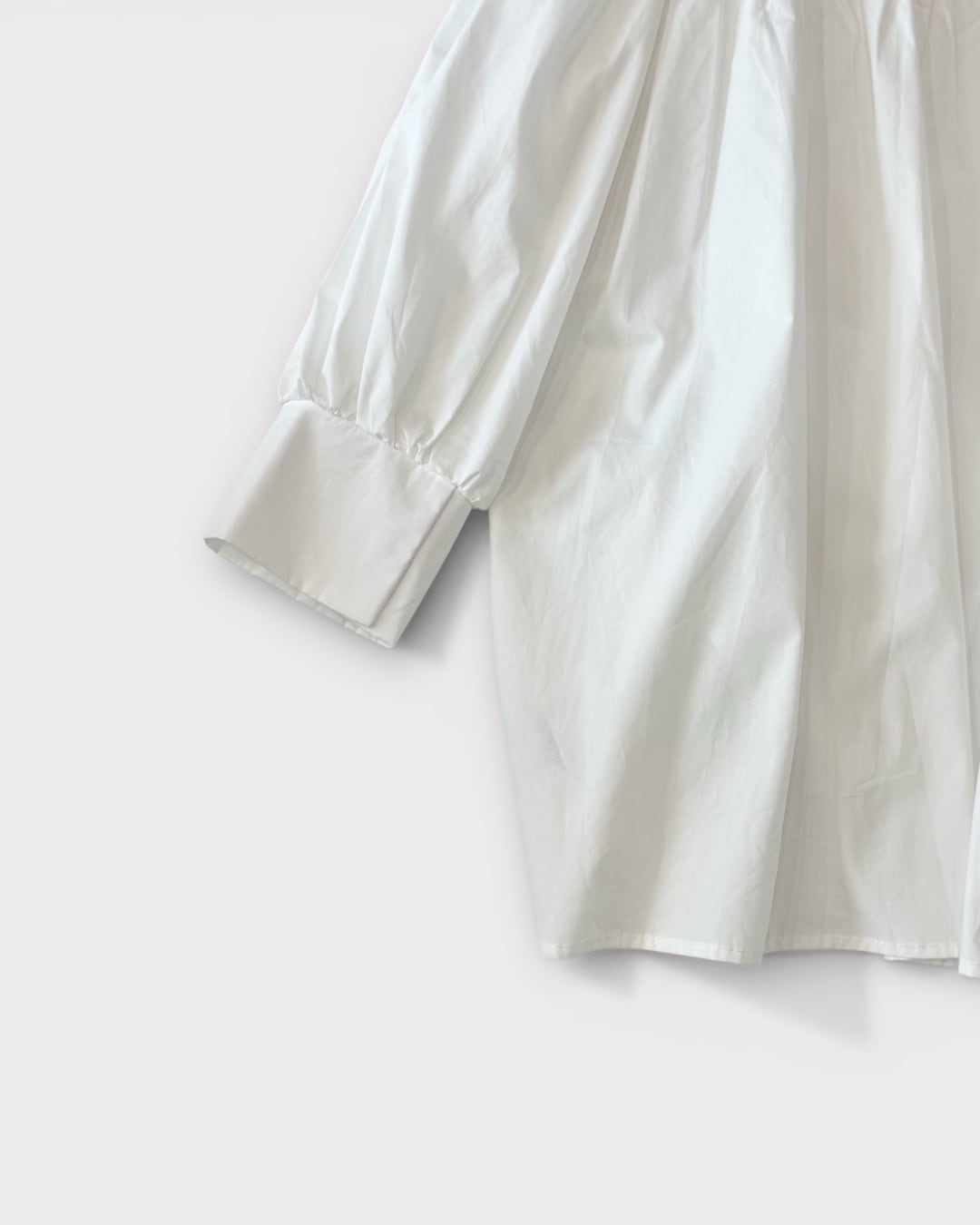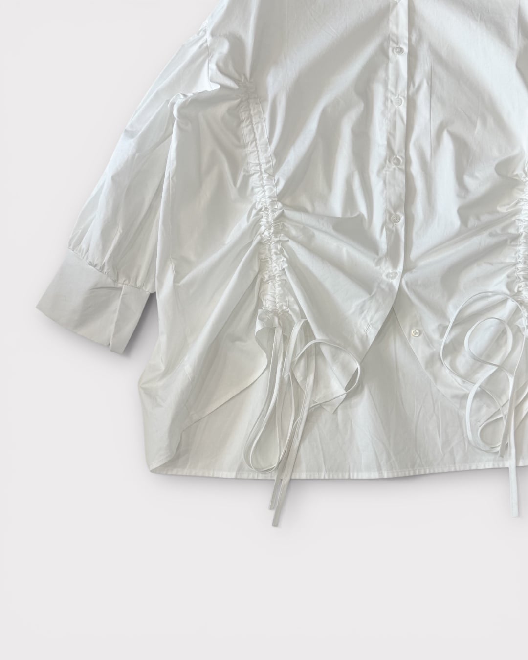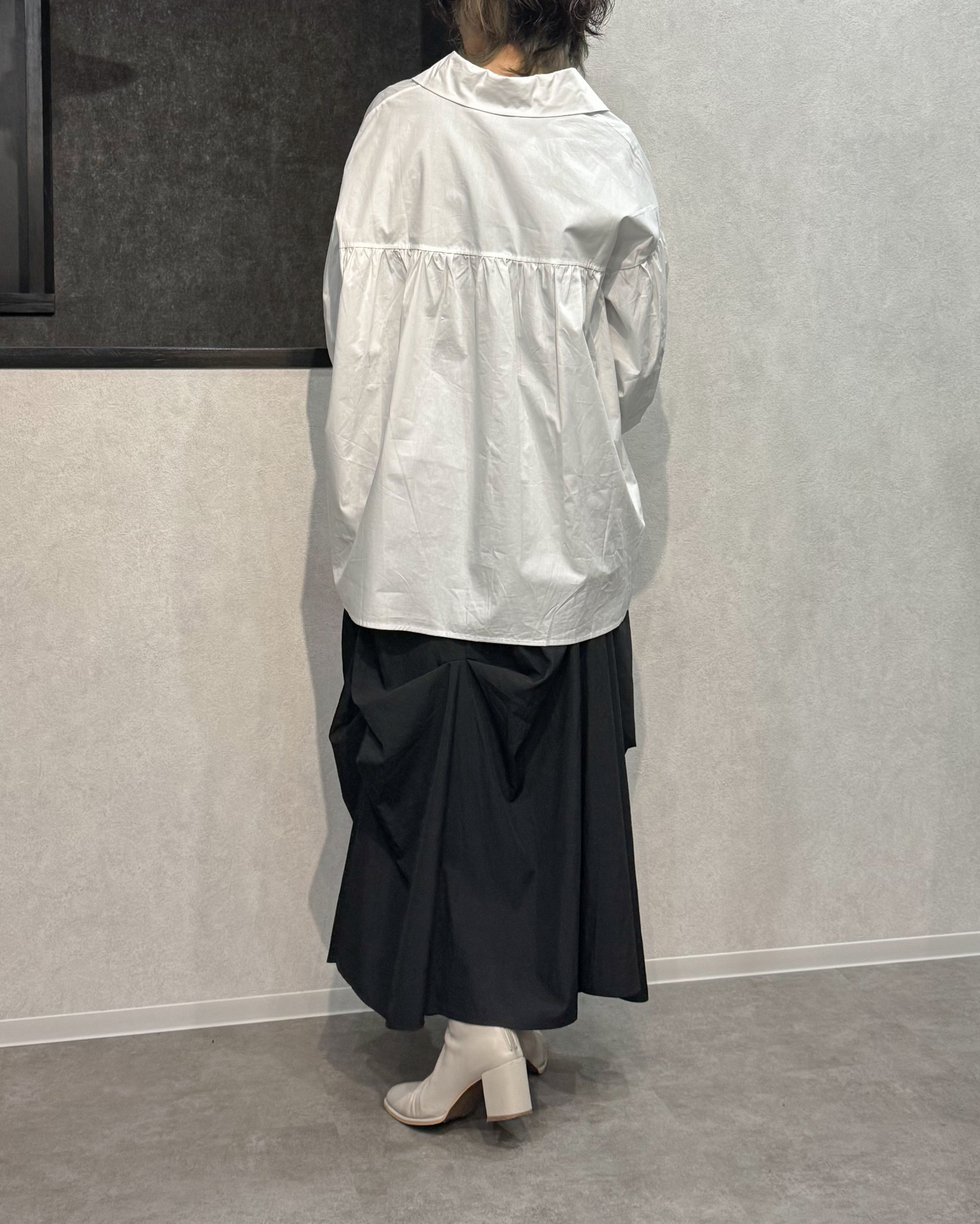 ギャザーが生む陰影と立体感が加わり、