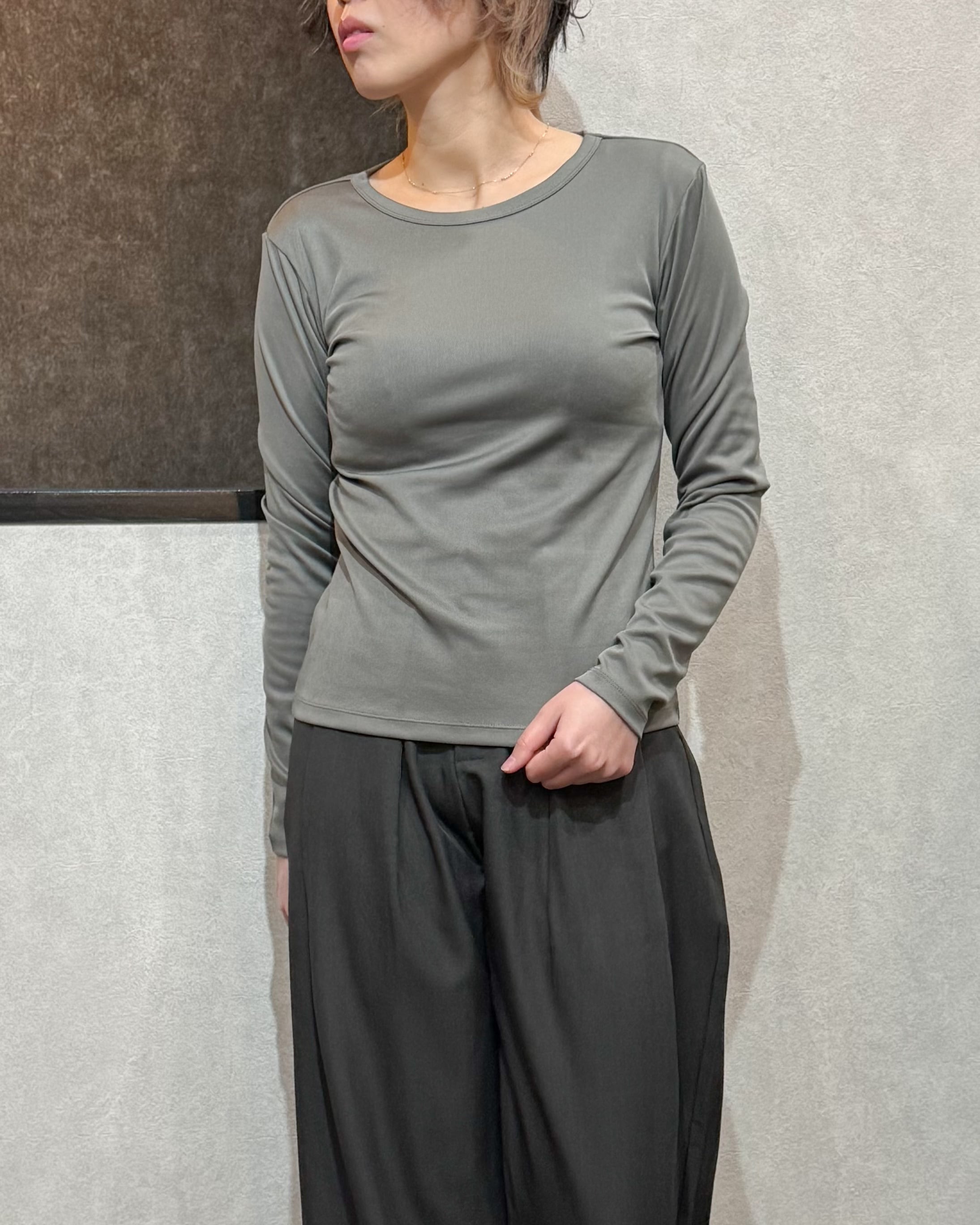ストレッチクルーネックロンT【Gray】