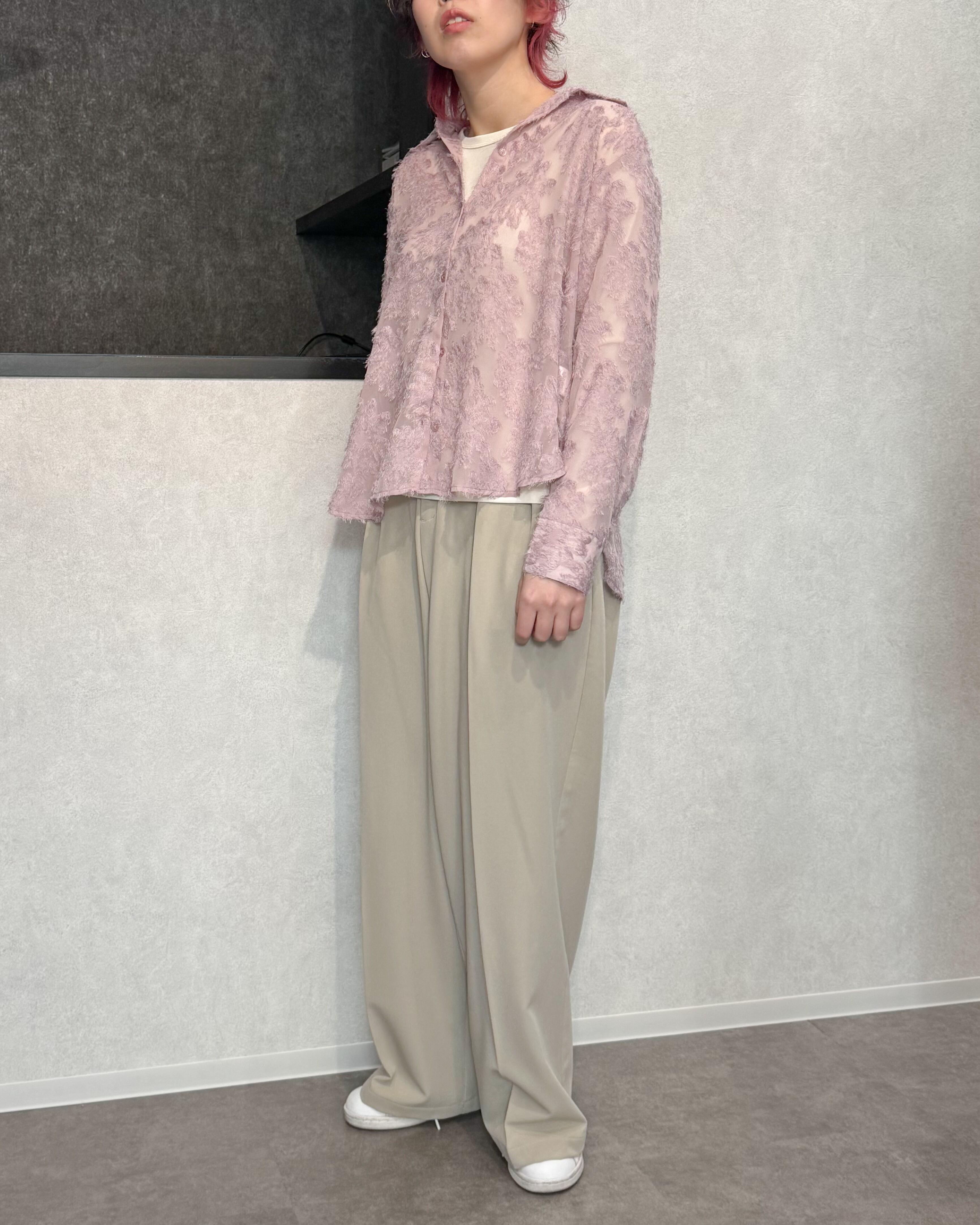 ラウンドヘムフリンジシアーシャツ【Pink】