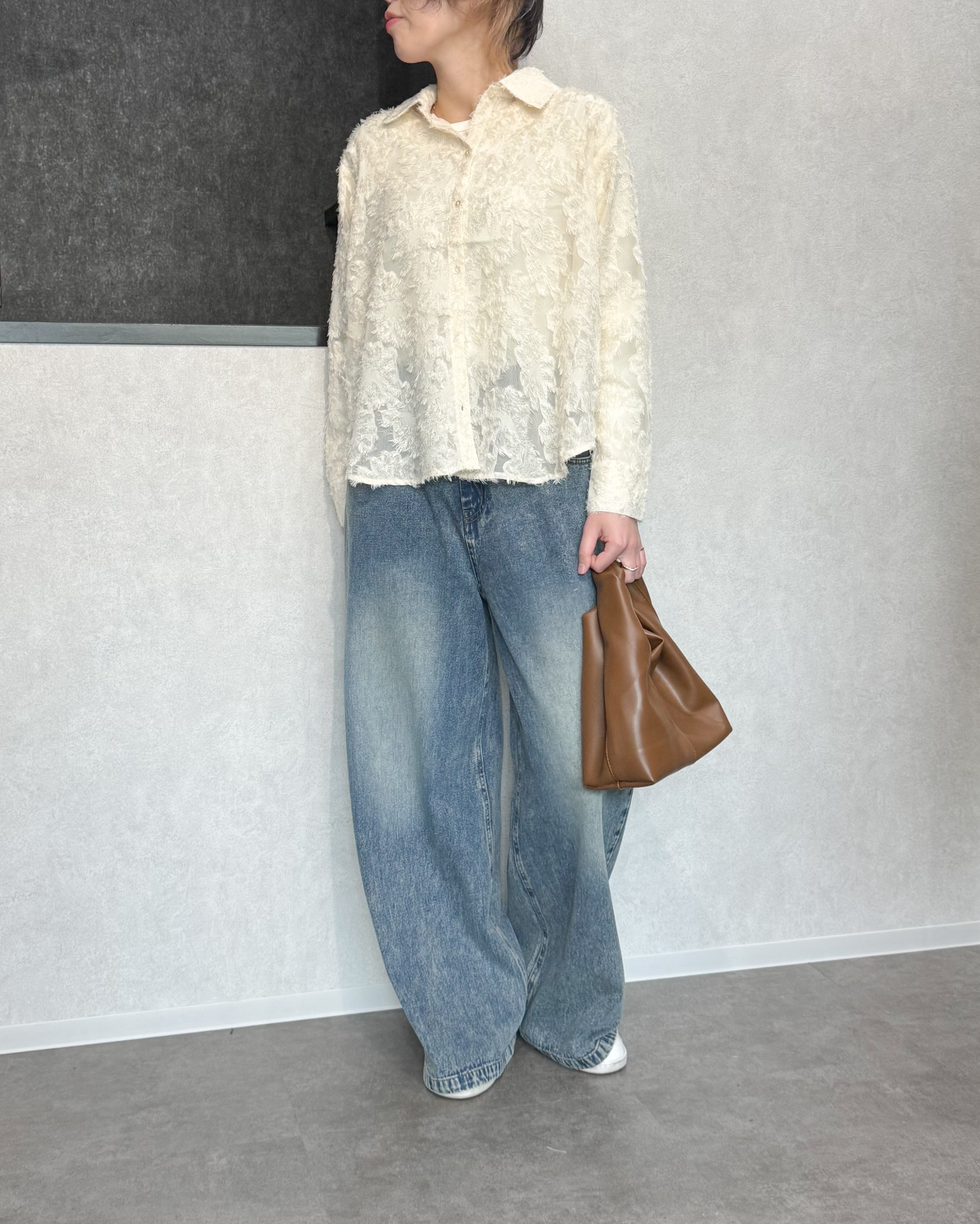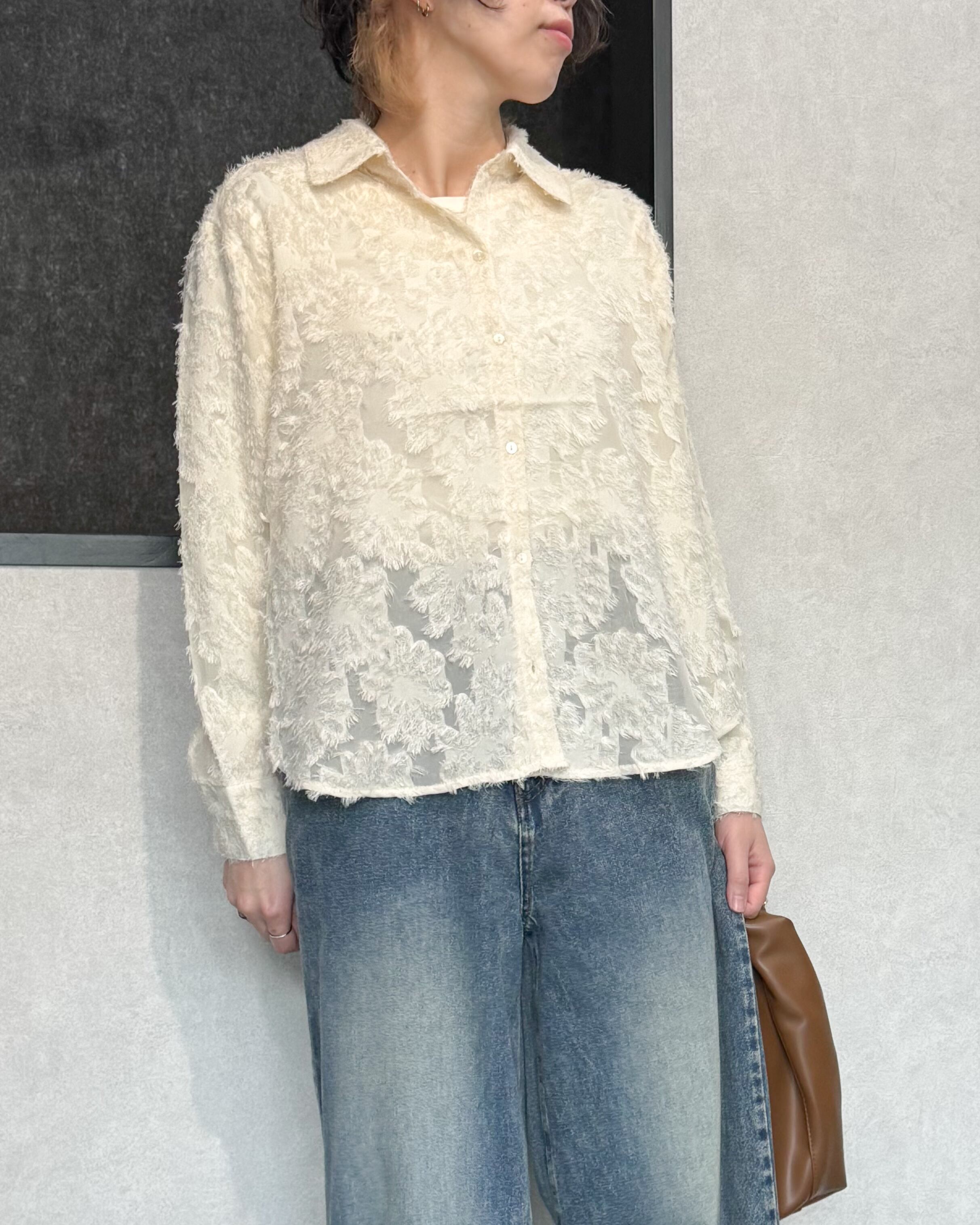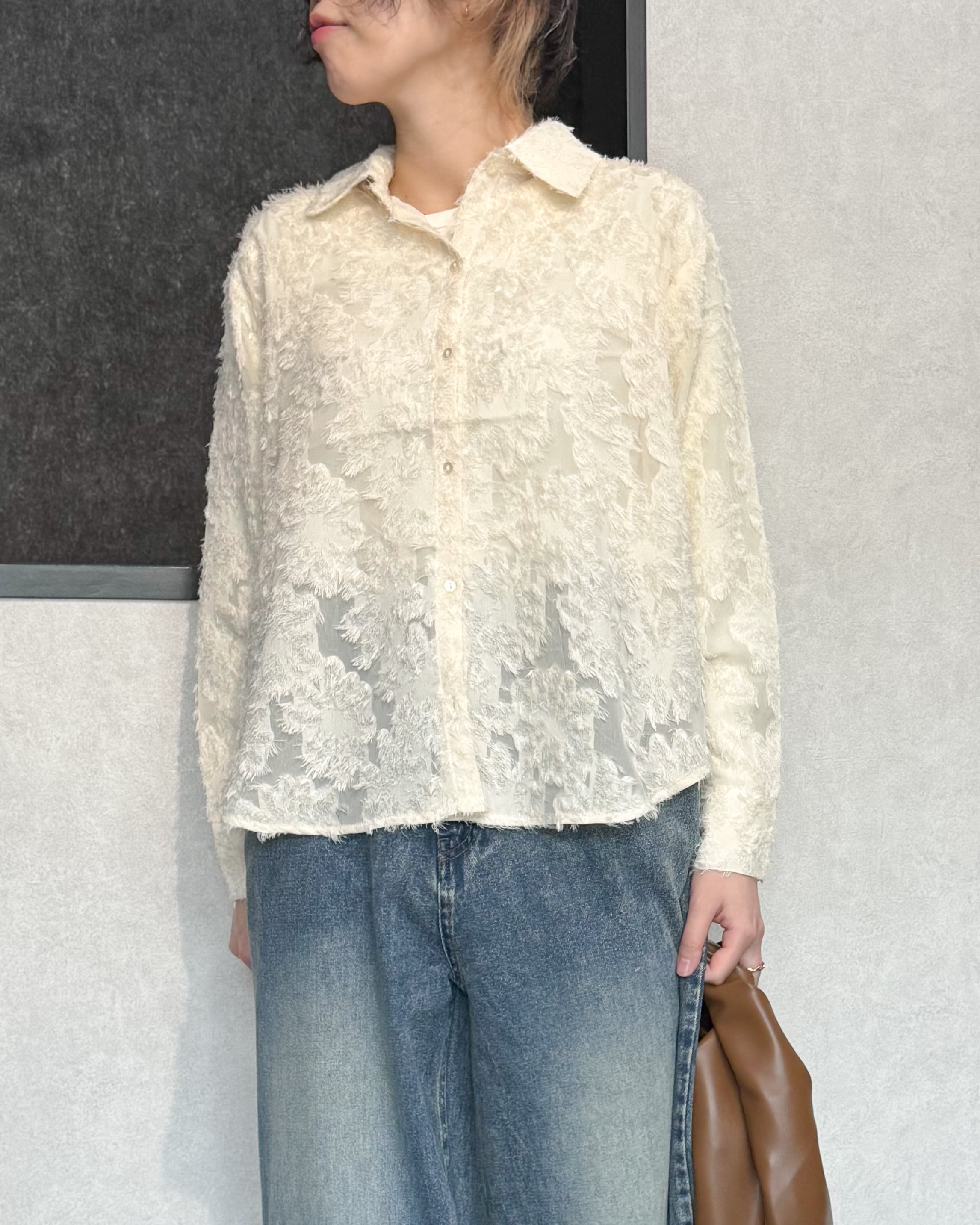 ラウンドヘムフリンジシアーシャツ【Ivory】