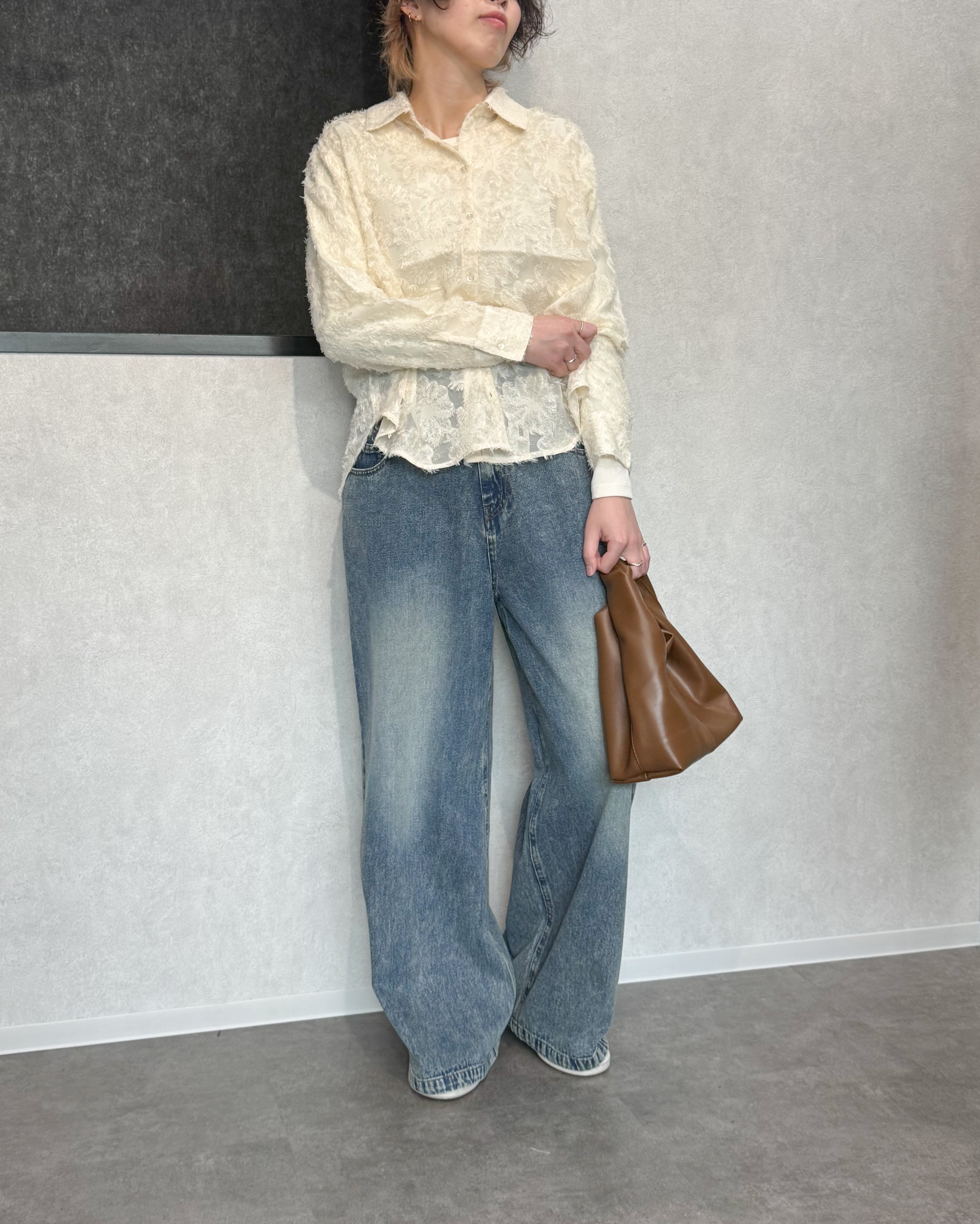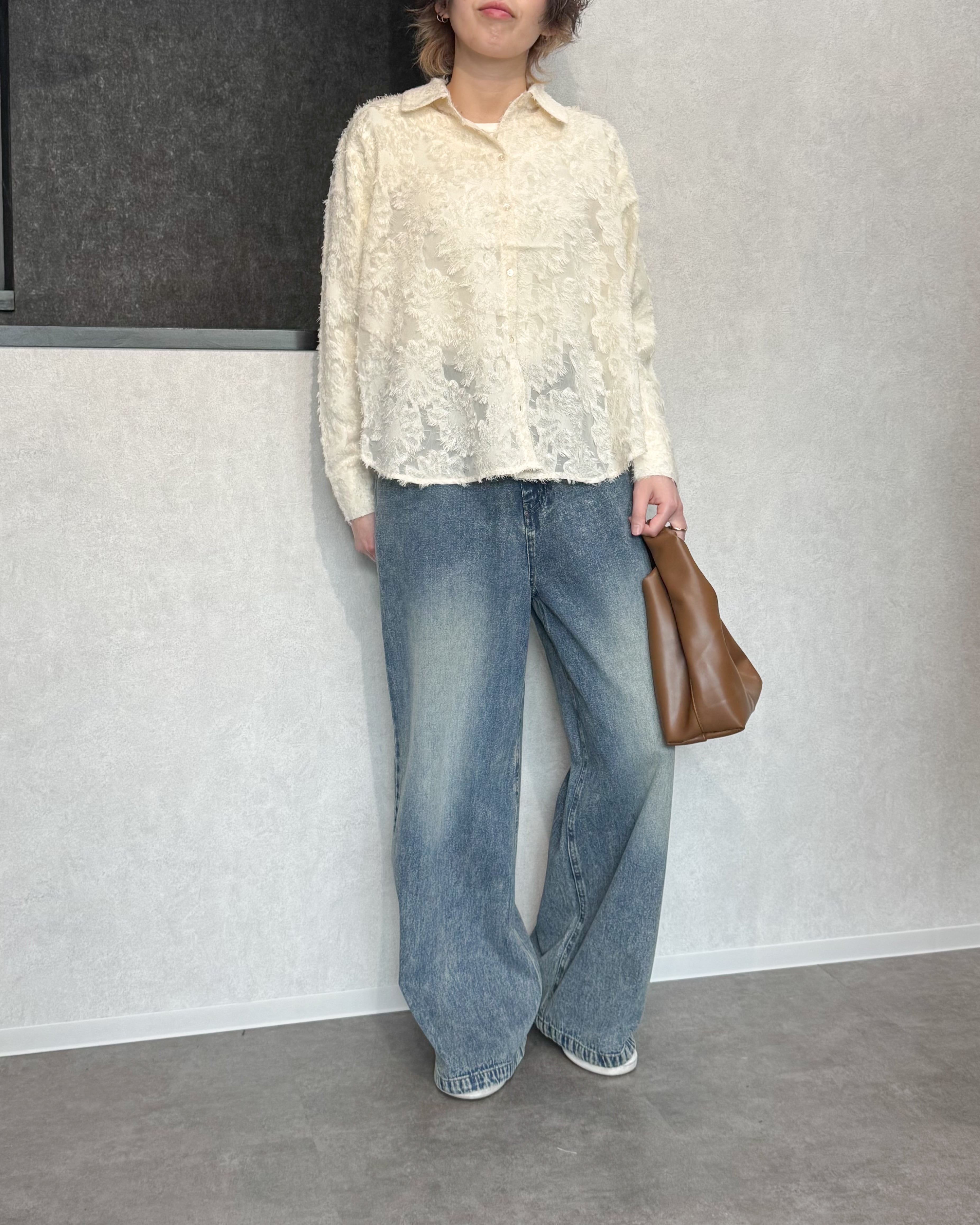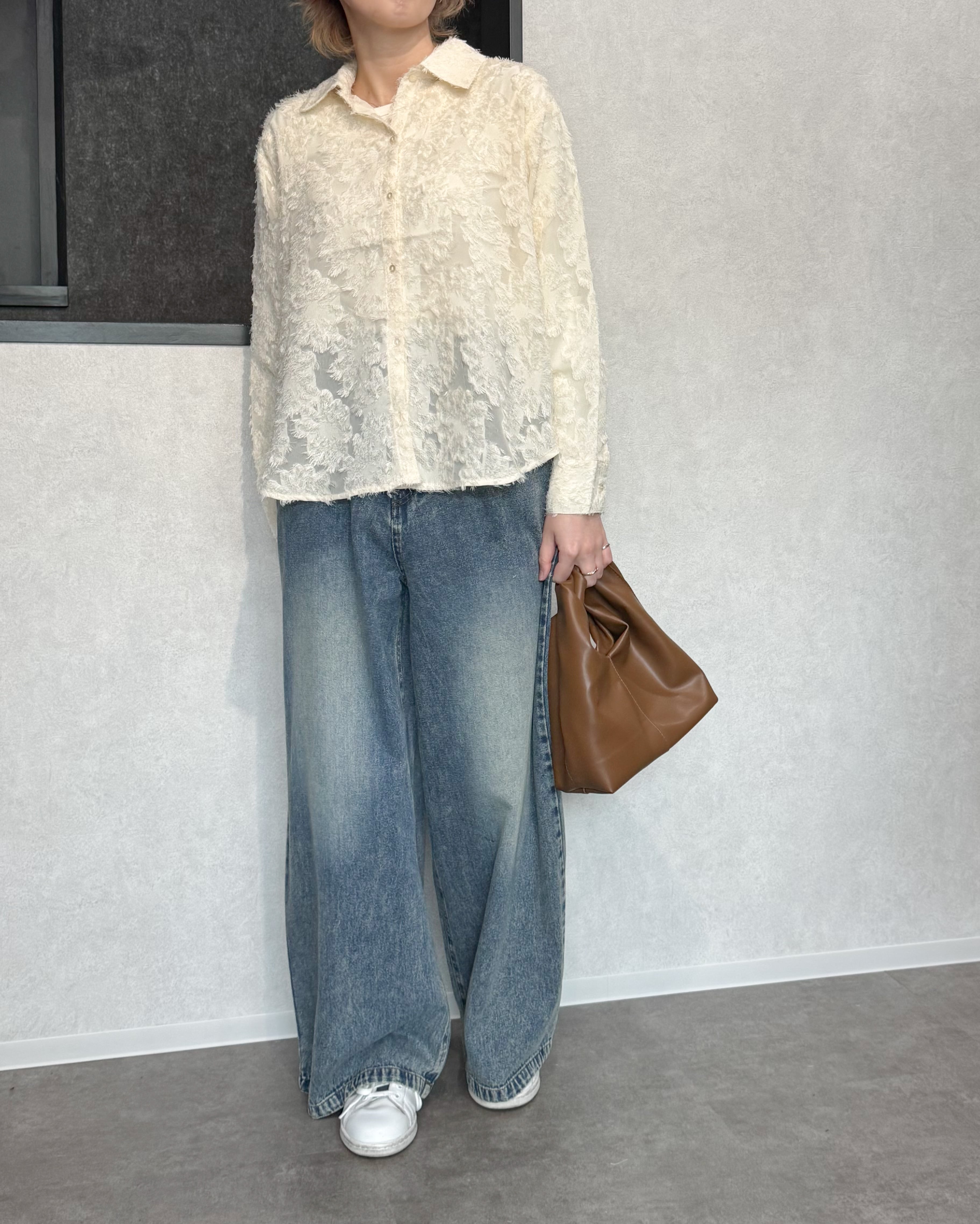 ラウンドヘムフリンジシアーシャツ【Ivory】